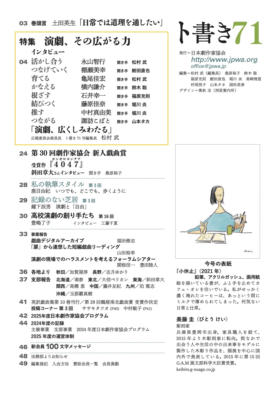 「演劇、広くしみわたる」松村 武(広報委員会委員長・ト書き71号編集長)