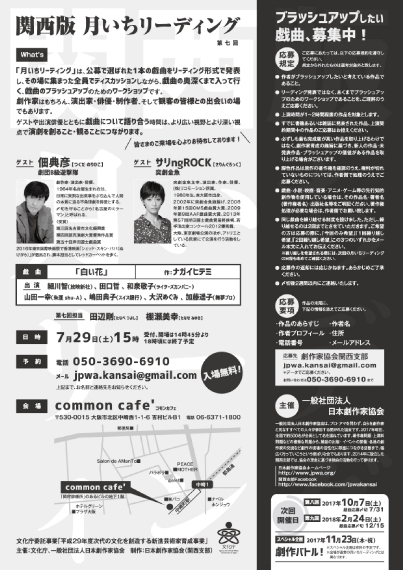 月いちリーディングは戯曲のブラッシュアップを行うワークショップのため、戯曲賞に応募中の作品のご応募はお控えください。
