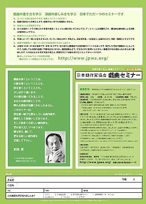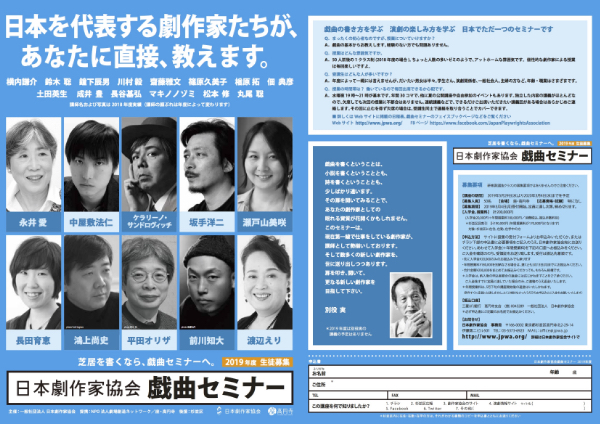 日本劇作家協会「戯曲セミナー」2017年度受講生募集